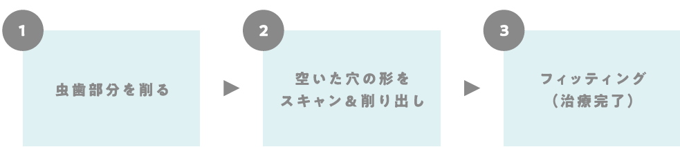 虫歯の進行を食い止める方法で最も有効な治療は感染してしまった歯質(感染象牙質)を削り、削った箇所を品質の高いセラミックで埋めることで、あなたの歯を守ります。