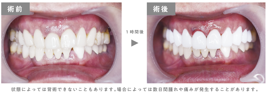 製作期間は歯1歯およそ1時間です。仮歯で無理に気を付けてお過ごしいただく必要がありません。また、その日に治療を完了できるので、無駄に何回も歯科麻酔を重ねる必要もありません。是非その日のうちに笑顔でお帰りくださいませ。