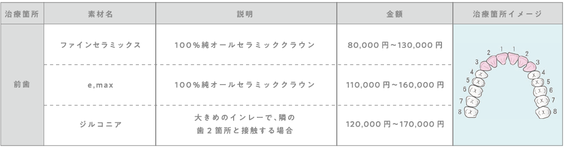 | 100%純オールセラミッククラウン | 80,000円〜130,000円 | |